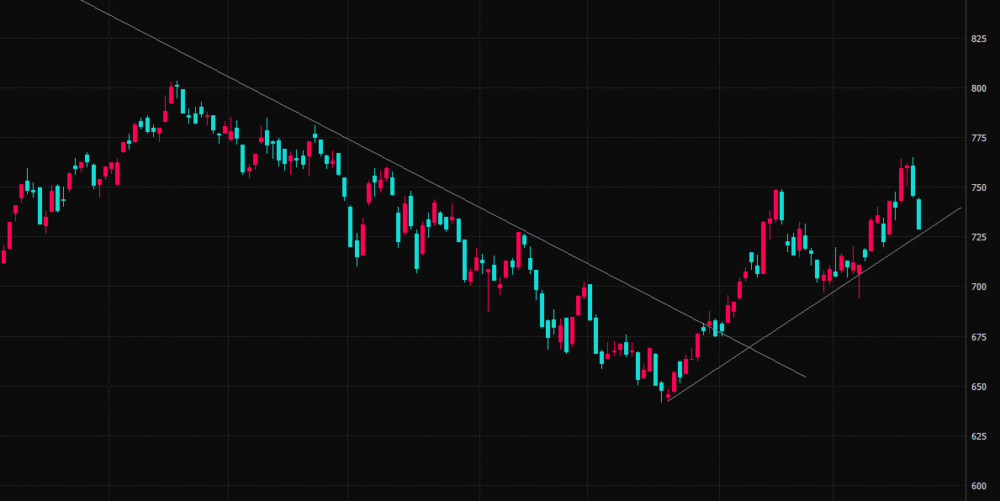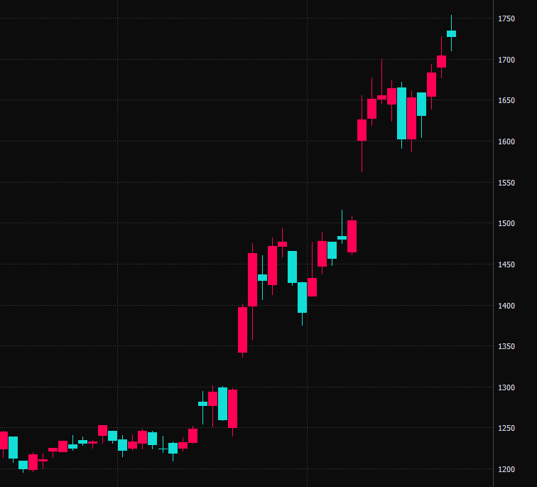 直近の グロース250指数のチャートです。